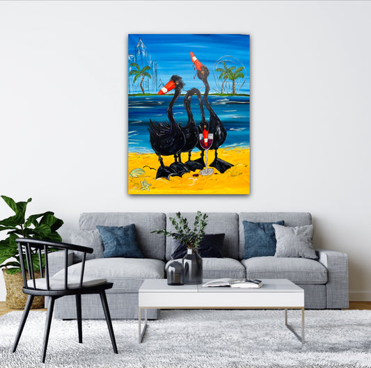A Bevy of Swans drinking a bevvie on the Swan (sold)